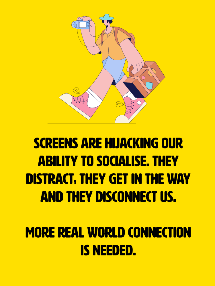 We routinely ignore each other and stare at our black mirrors. Once, this would have been frowned upon, but now it’s acceptable behaviour. It’s weird. This is no way to live our lives. We are social animals. It’s actively harming us.