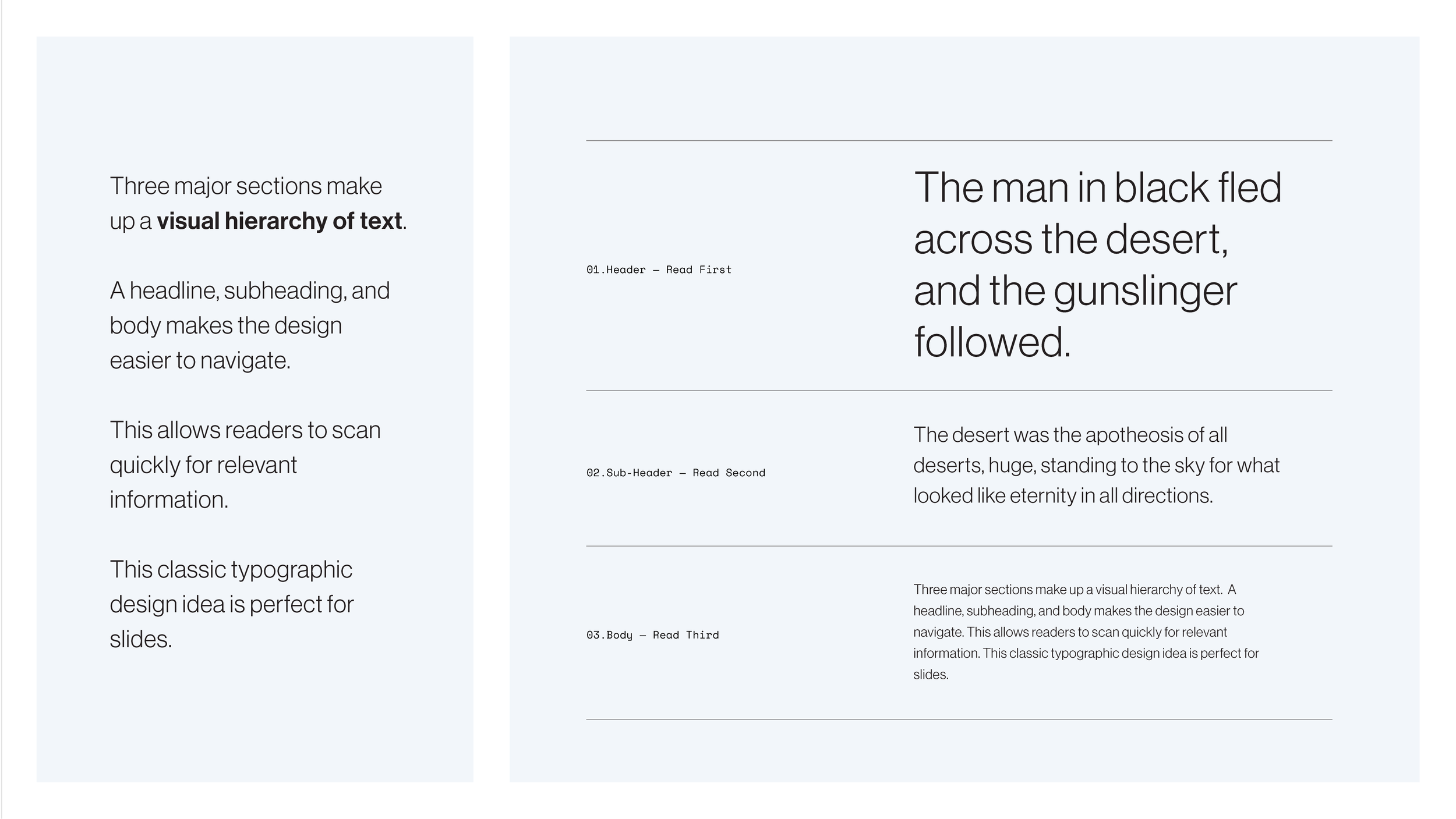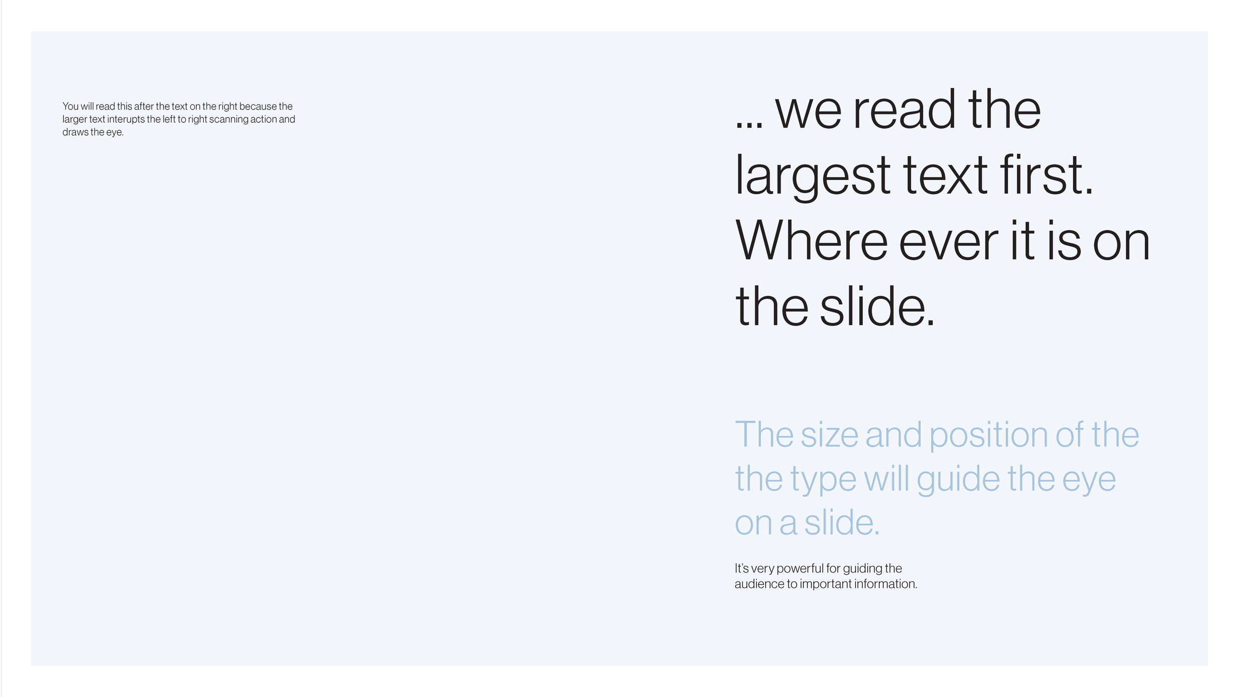 The visual hierarchy allows the person designing to guide the reader’s eye in the order that they deem correct.