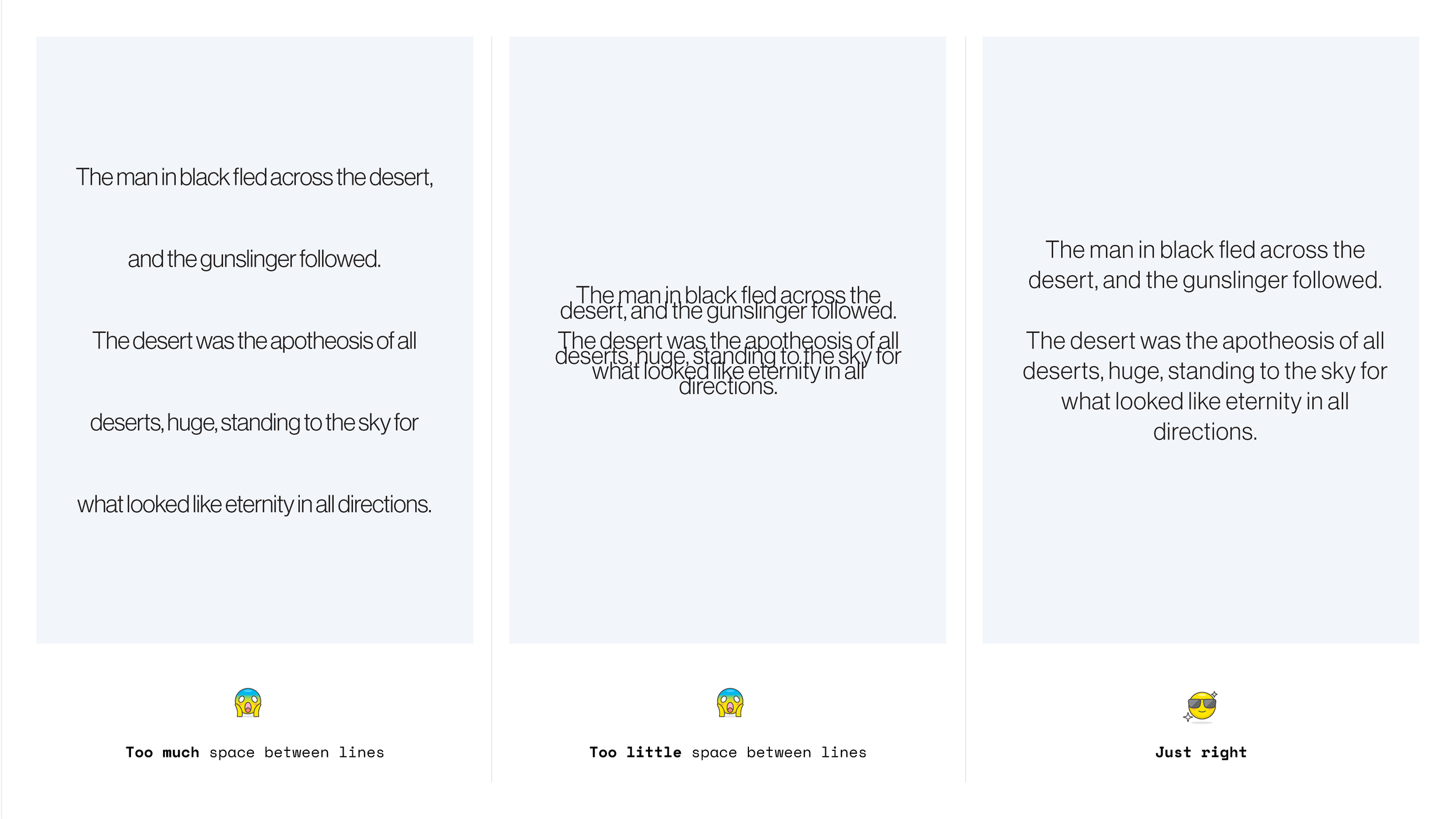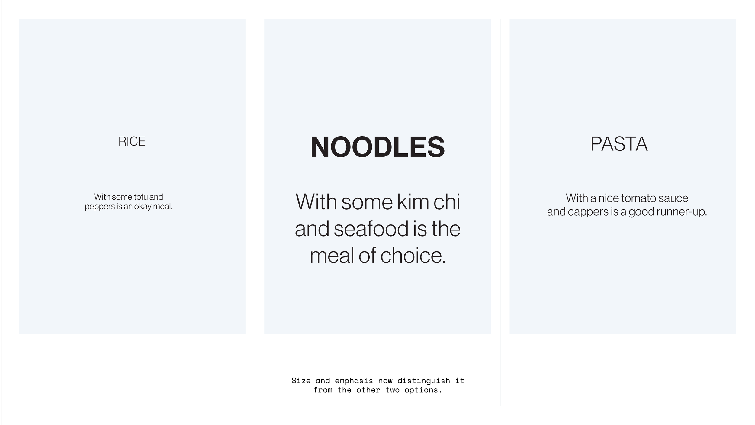 Use three typography sizes:
